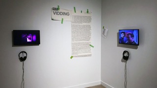 The layout of the vidding section was unfortunate in that four of the seven vid monitors were in a narrow hallway, so people had to either stand close to the screen if they wanted to put on the single pair of headphones mounted beneath each so others could pass through behind them, or else stand against the opposite wall and watch without sound. I saw visitors doing both.